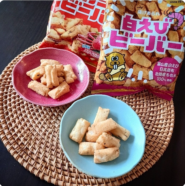 食べて応援北陸フェア パッケージのビーバーくんがとっても可愛い♡ 先日、横浜赤レンガ内のショップにて北陸コーナーを発見👀ずっと気になっていて食べたことのなかった“ビーバー”を二種類購入しました♪石川、福井、富山限定販売の、歴史ある有名な揚げあられで、今では味もたくさん出ているようです。その中から定番の白えびと、カニをチョイス! 左:カニ 右:白えび ちなみにざっっくりですが(笑)ビーバーの由来は、 … 続きを読む 北陸ソウルフードといったら?!揚げあられ『ビーバー』