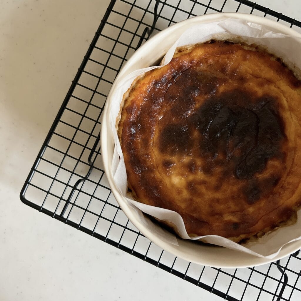 本の中のレシピで、酒粕のベイクドチーズケーキを焼きました。