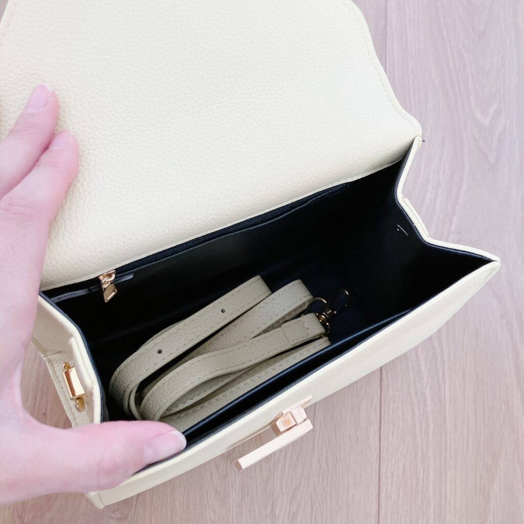 内側には小さなファスナーポケットと、ショルダー紐がついていました!