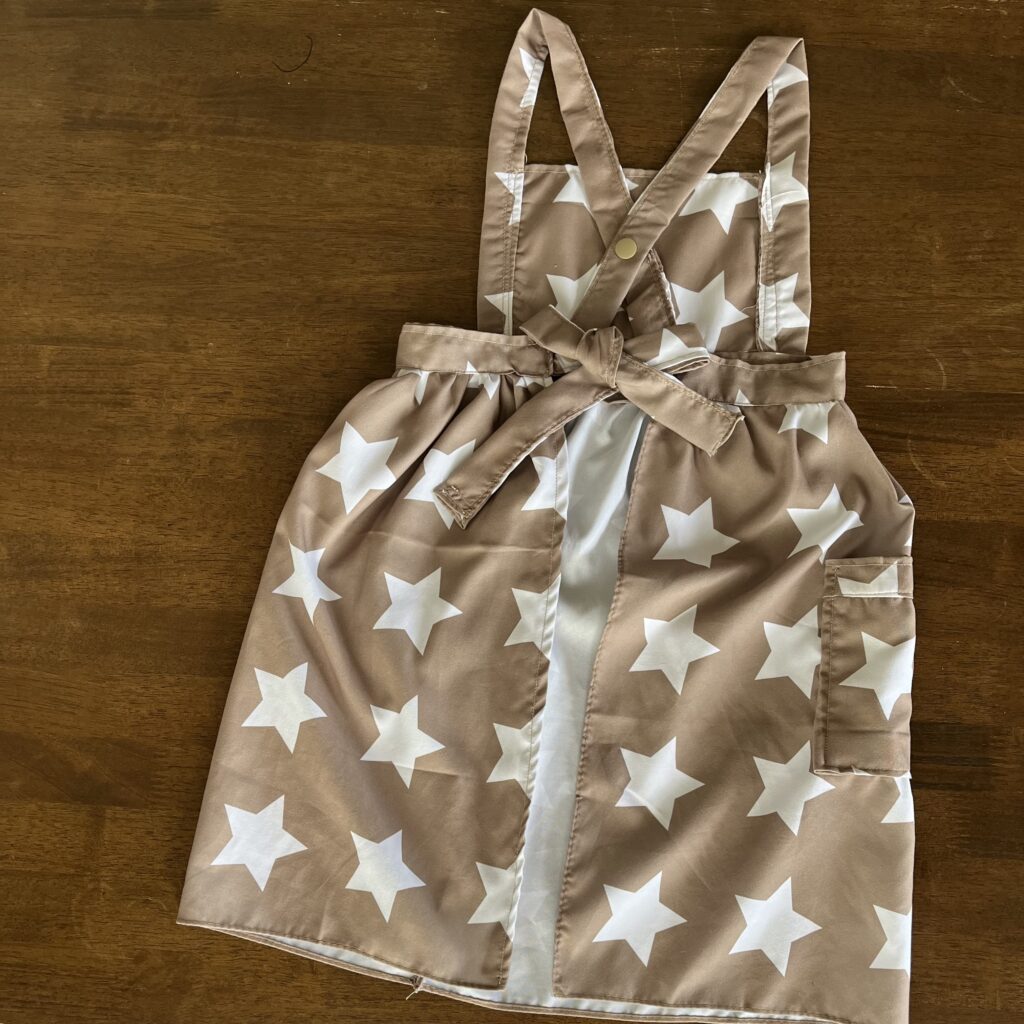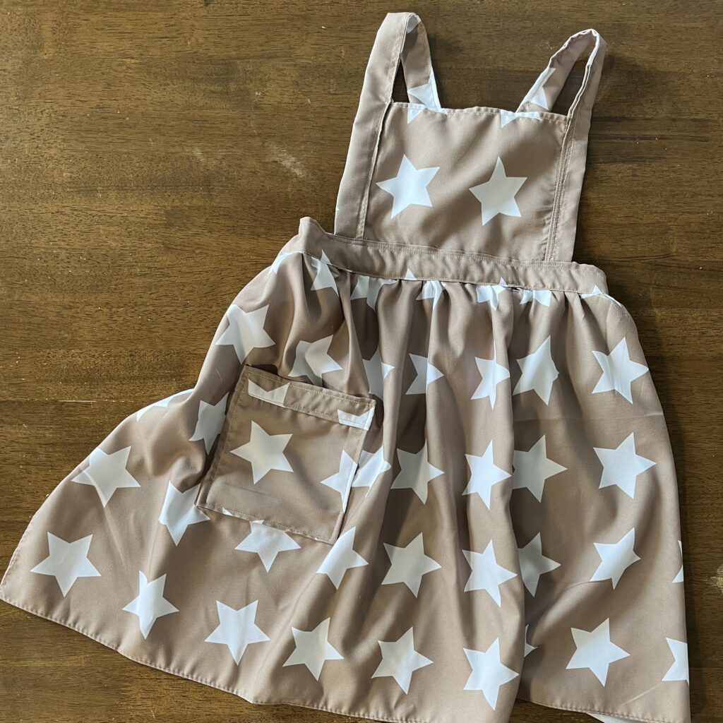 これを解消すべく、エプロンを用意したいなぁと思っていたところ、キャンドゥで娘が星柄のランチクロスを発見!気に入った様子だったので、こちらを使ってミシンで手作りしてみることにしました。