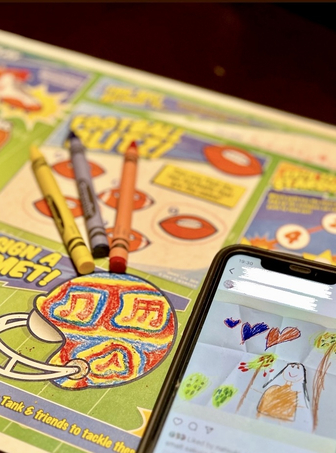キッズメニューには、こうやって塗り絵やクイズ付きの紙が付いてくるのは日本と似ていますね。