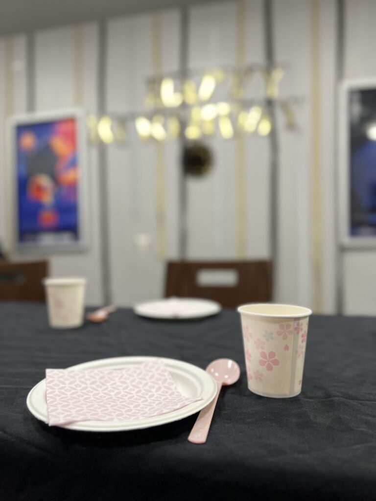 ・パーティルームの飾り付け、紙皿、フォーク、すべて込み