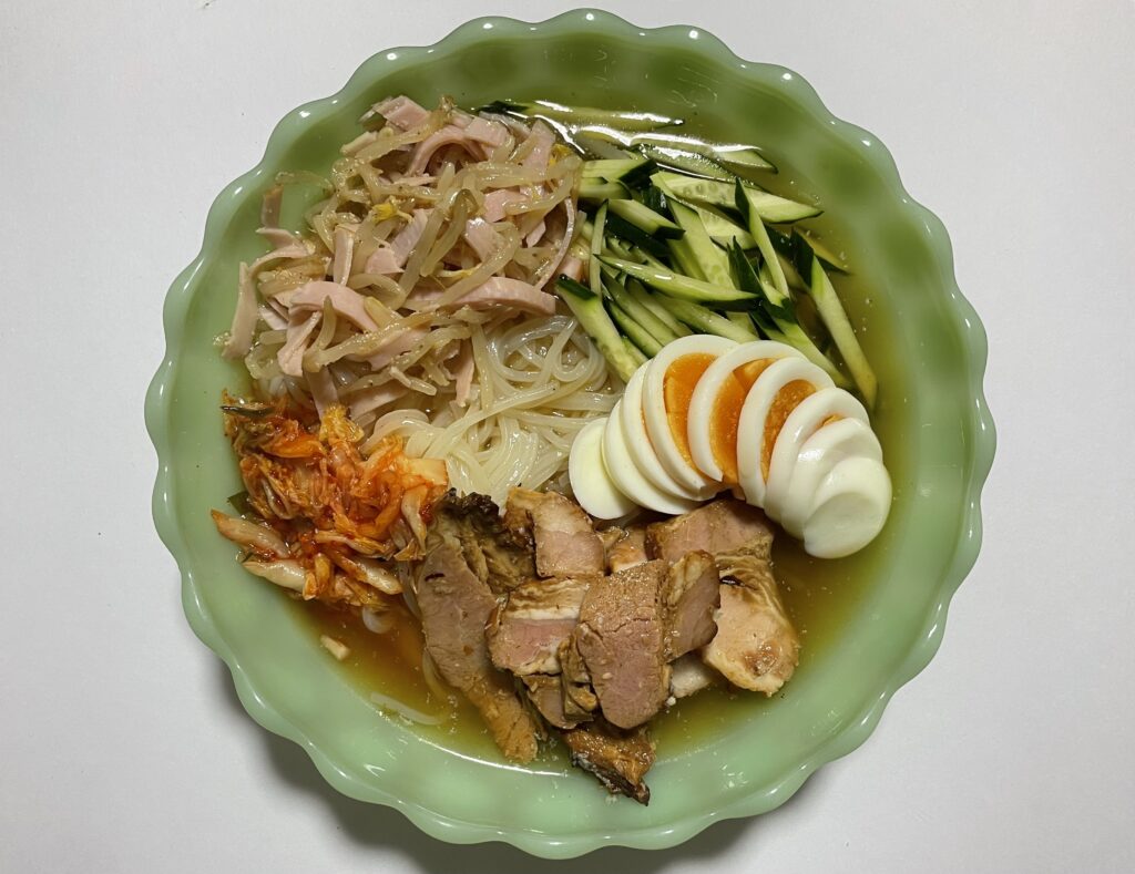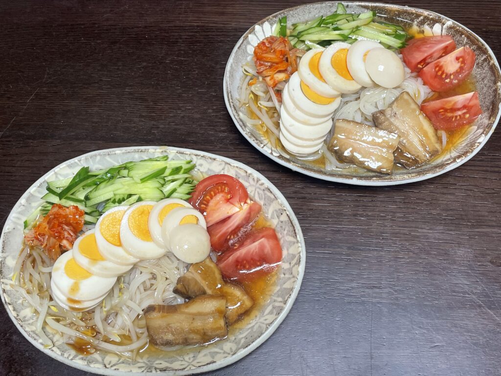 トッピングをマイナーチェンジしながら、無印良品の盛岡冷麺を食した5日分を紹介させてください。