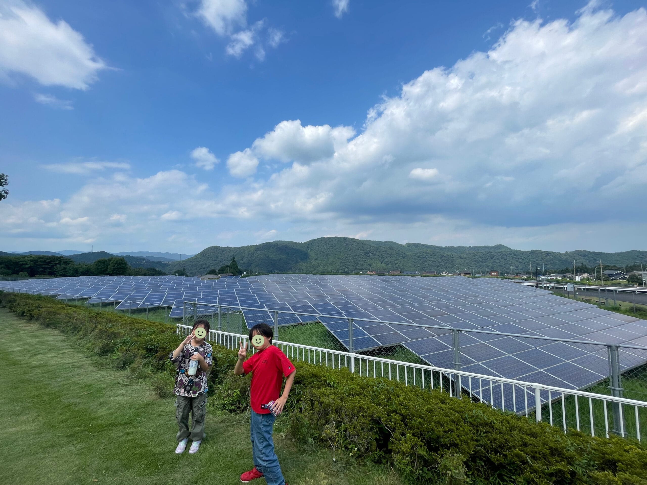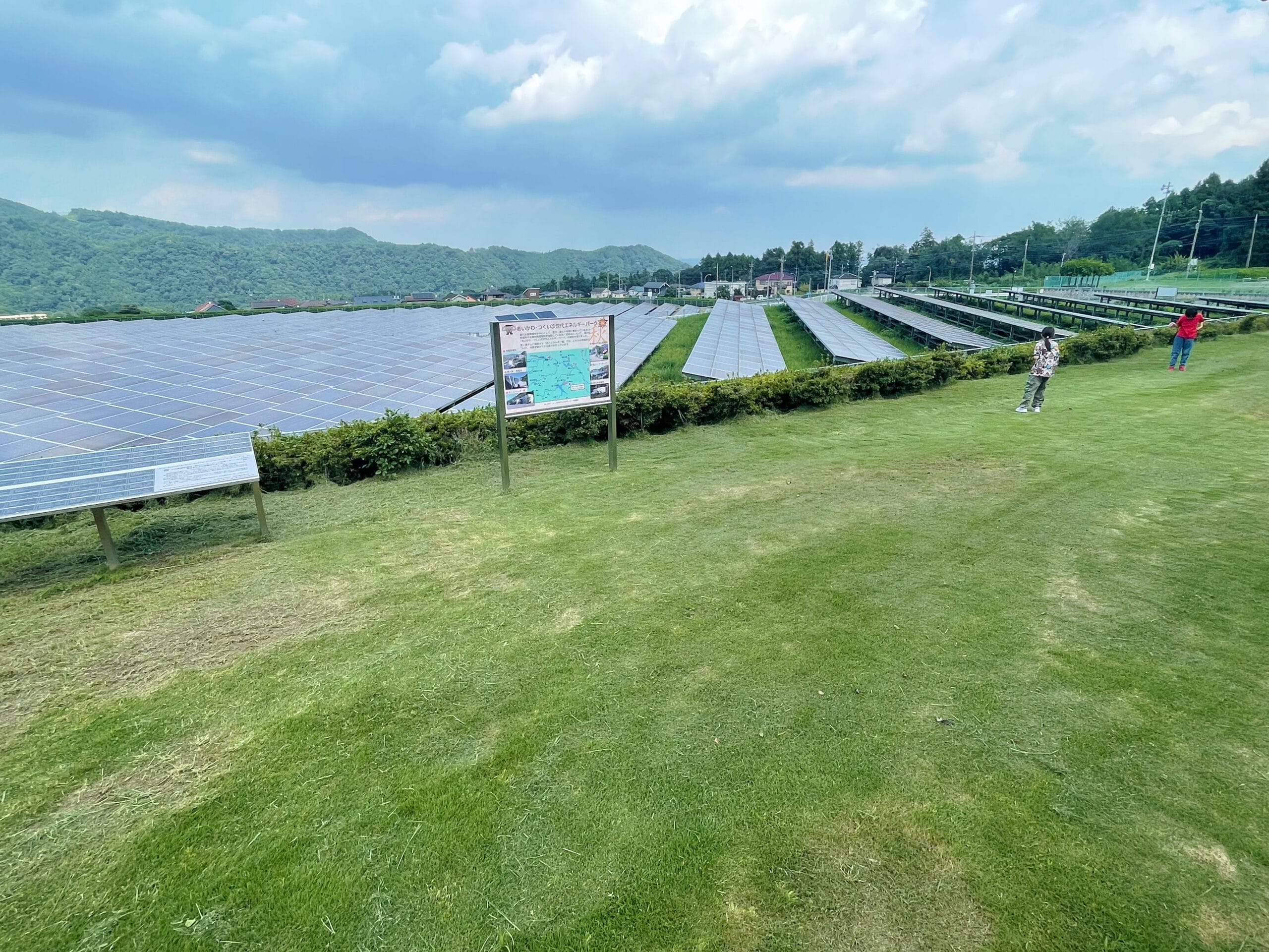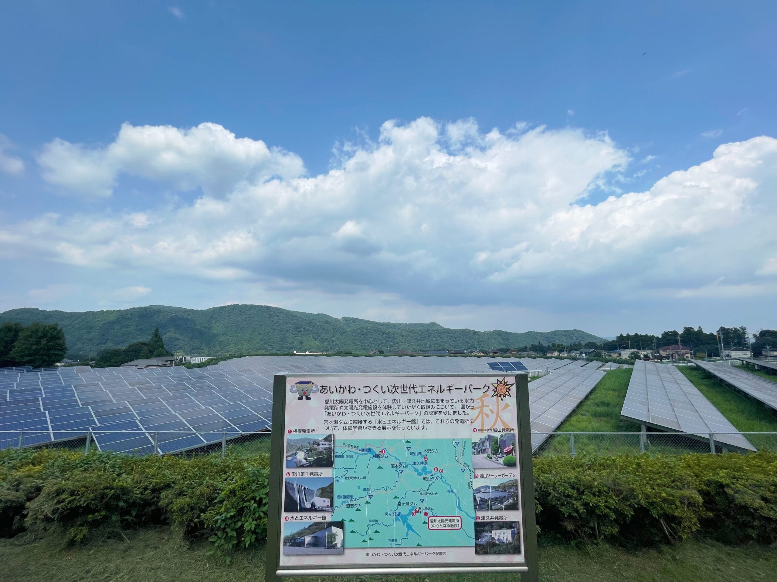 宮ヶ瀬ダムから車で少し走ると、「愛川ソーラーパーク」に到着しました。無料で自由に見学ができます◎