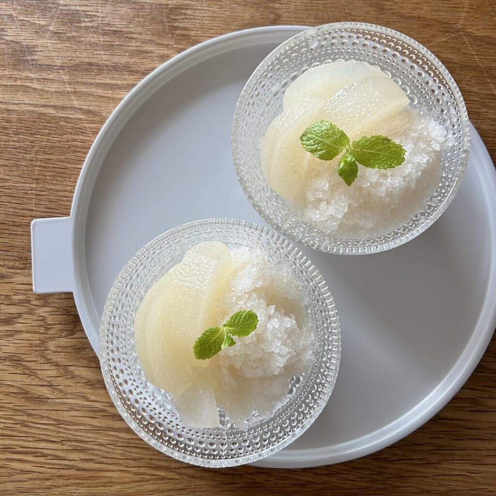 梨本来のみずみずしさを感じつつ、そのままのとはまた違う食感と味わいを楽しめる贅沢なひと皿でした。