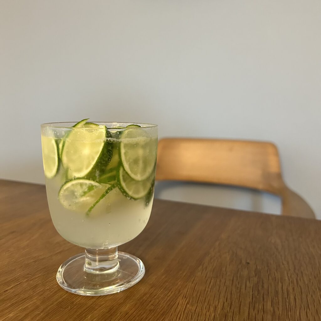氷入り炭酸水にすだちスライスをこれでもかとダイブさせて。