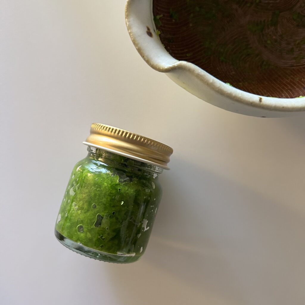 すだち10個で手のひらサイズの小瓶いっぱいのすだち胡椒ができました。