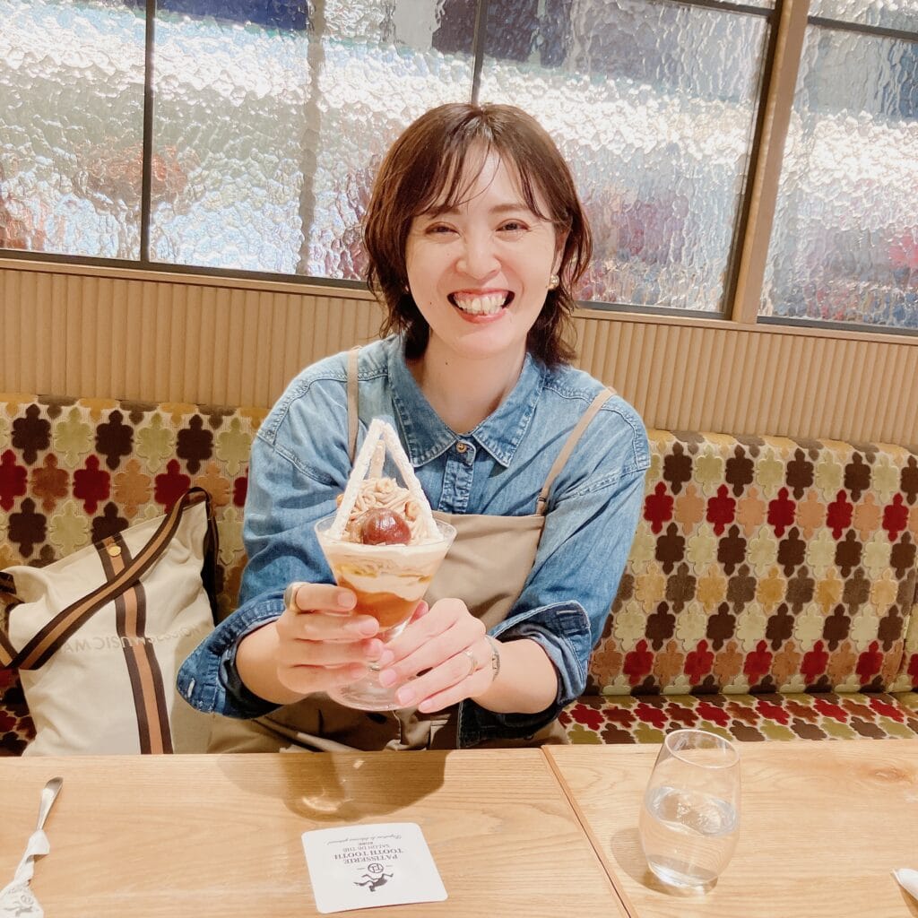なっちんはパフェを、私はシャインマスカットのケーキを食べました。