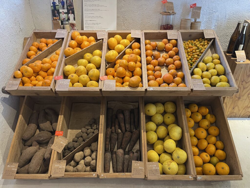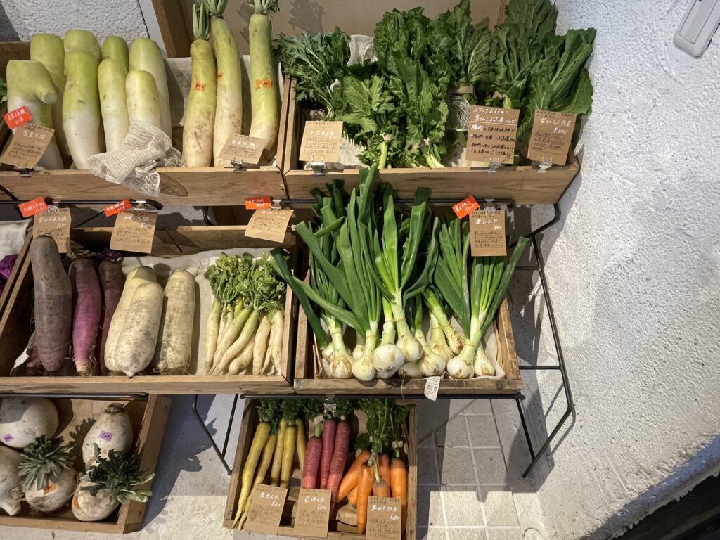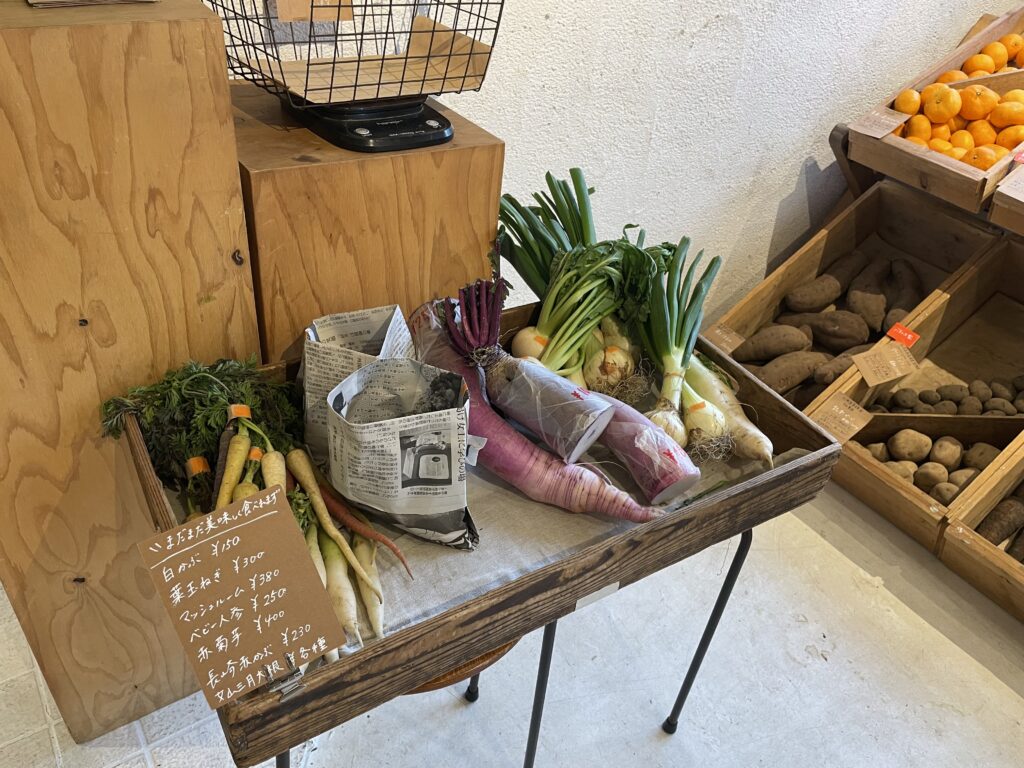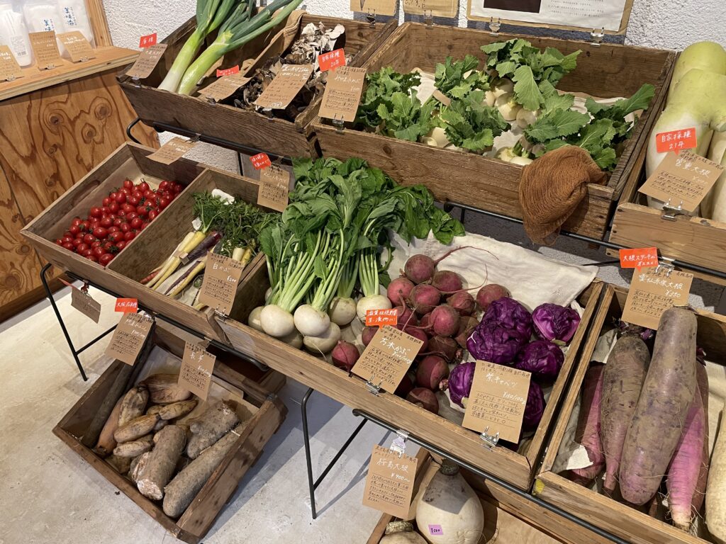 こちらはつい最近のミコト屋さんの青果コーナーです。今は端境期で、根菜が多め。