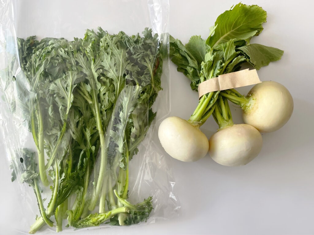 購入したのは、春菊とカブ。カブは店頭で生をカットして塩をふっただけのものを頂いたのですが、とーーっても甘くて感動してしまって。春菊はナムルに、カブは塩麹蒸しになりました。(また料理部クリップのほうで紹介させてください。)