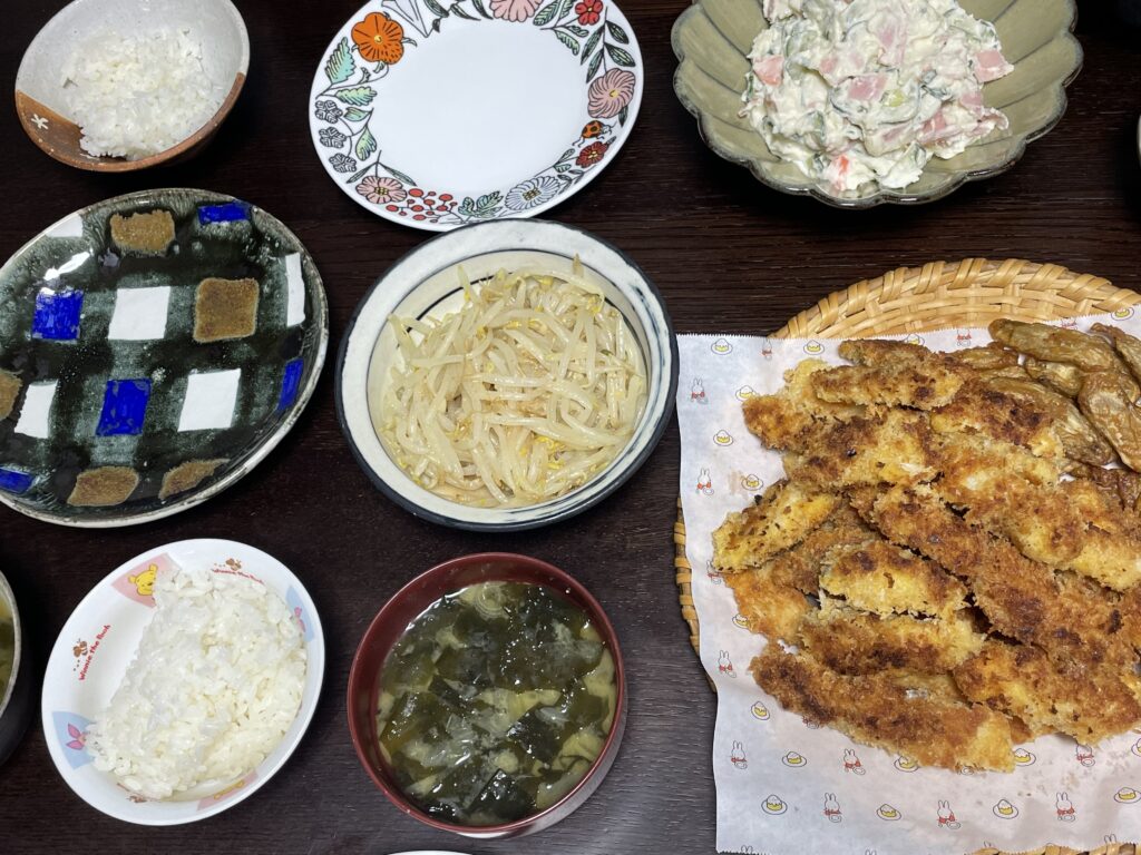 この日のメインは魚のフライと牛蒡のから揚げでした。