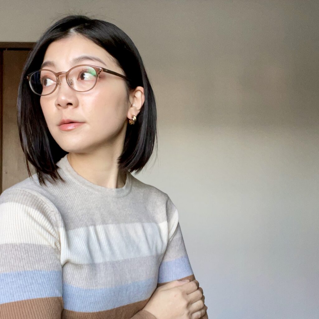 「優しい雰囲気になりたい」と思って選んだメガネ。柔らかい雰囲気なので「抜け感」も出て嬉しい。