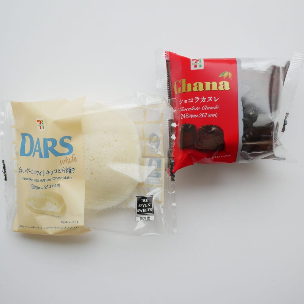 今回、私が買ってみたのが、ガーナとコラボした「ショコラカヌレ」と、白いダースとコラボした「ホワイトチョコどら焼き」。カヌレも好きだし、どら焼きも好きだし・・・チョコも大好き!