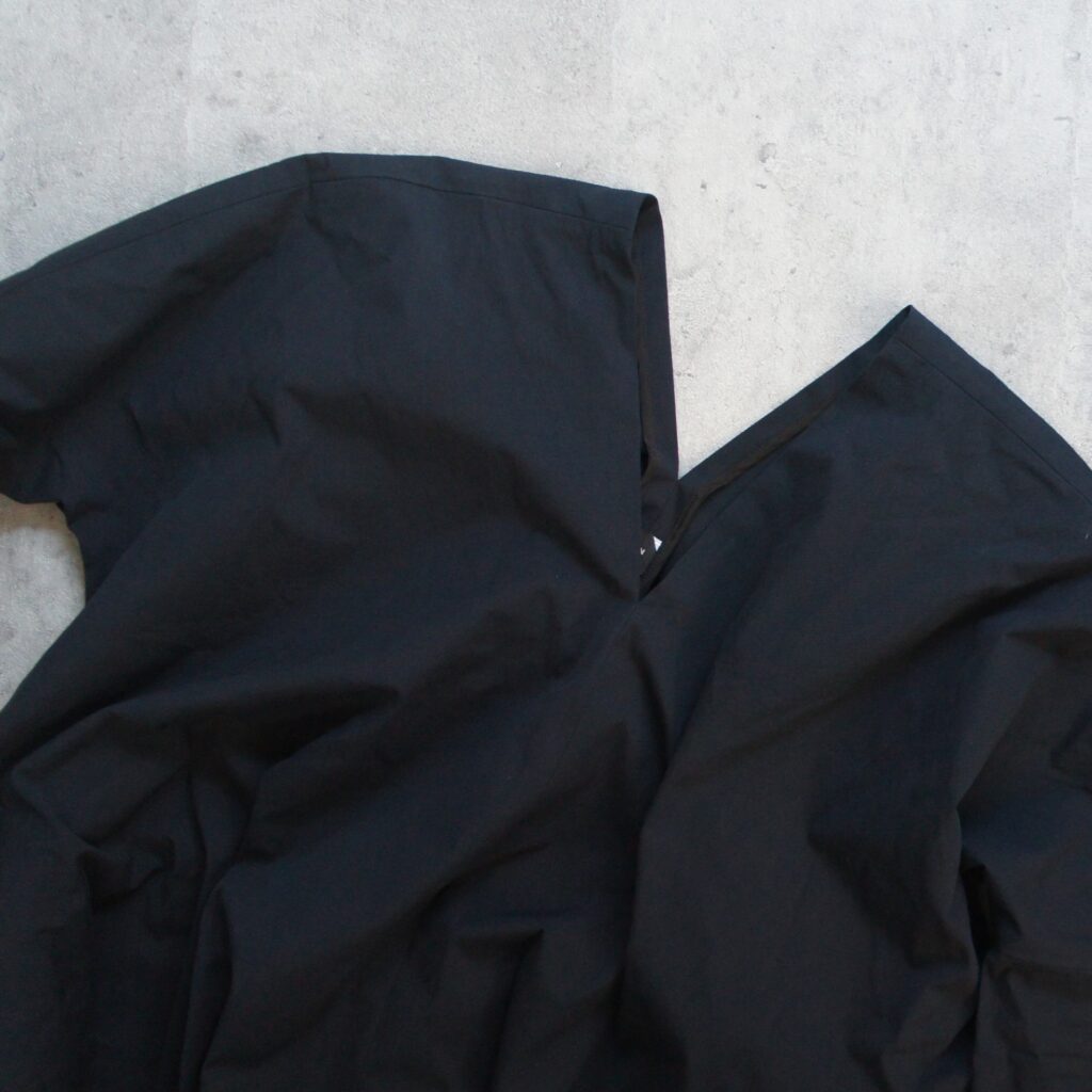 紺が年々似合わなくなってきたものの、これはむしろある程度の年齢になった方が似合う色(だと思い込んで着ている)。前後に空いたVも程良く、丈もAラインのシルエットも大好き。