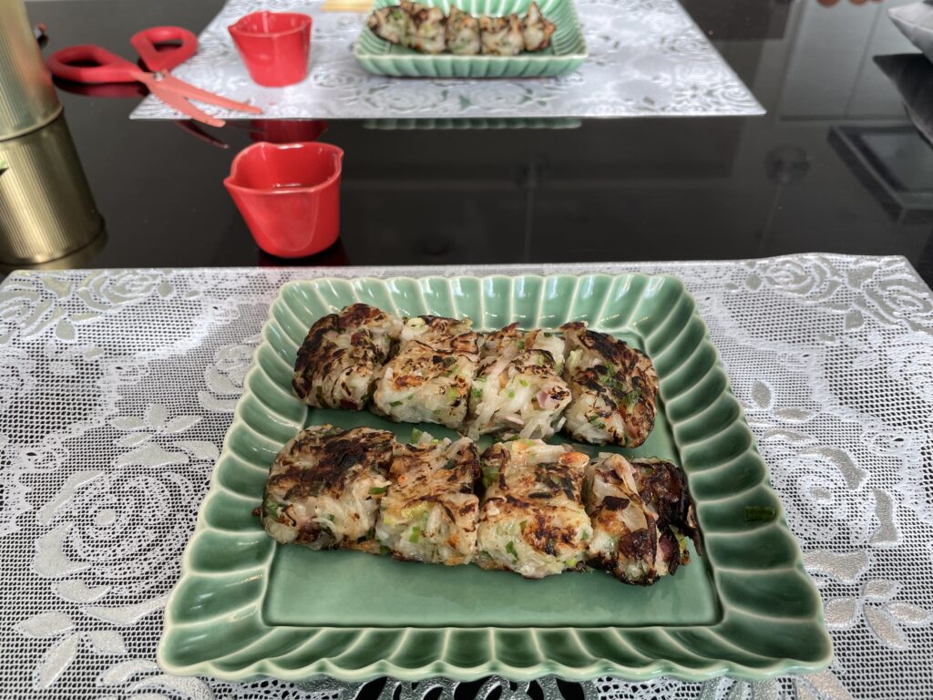 この日はママ友さん宅でお手製の大根餅を頂きました。桜海老とベーコンが入っています♩