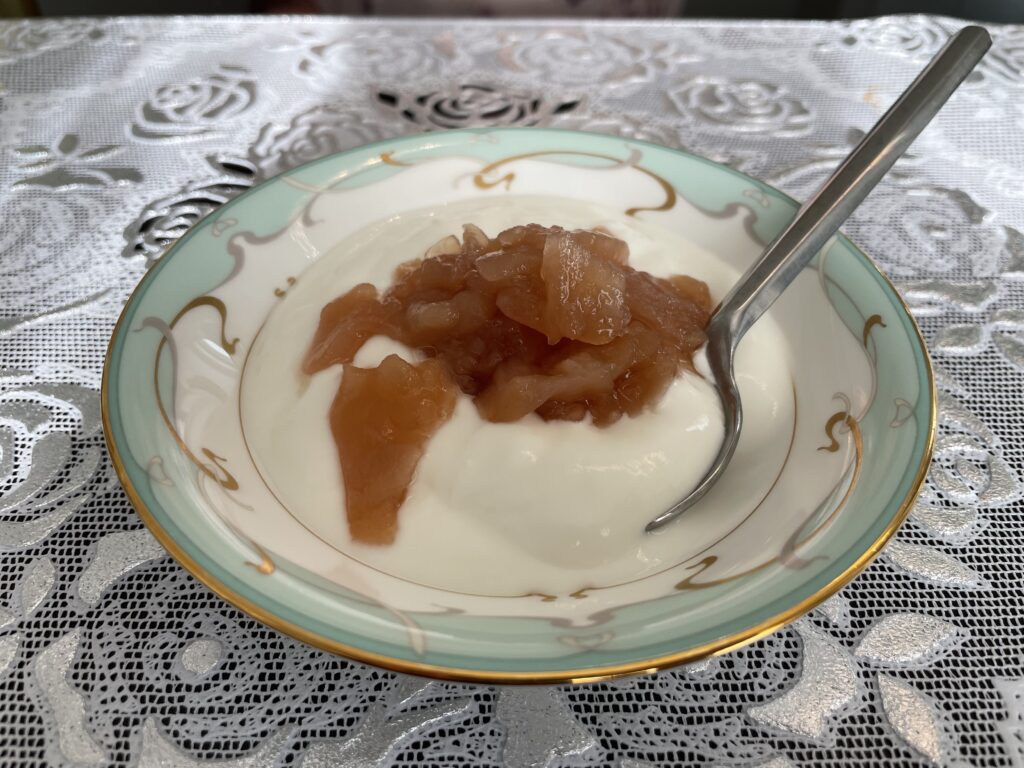 デザートにお手製リンゴのコンポート入りヨーグルトも頂きました。