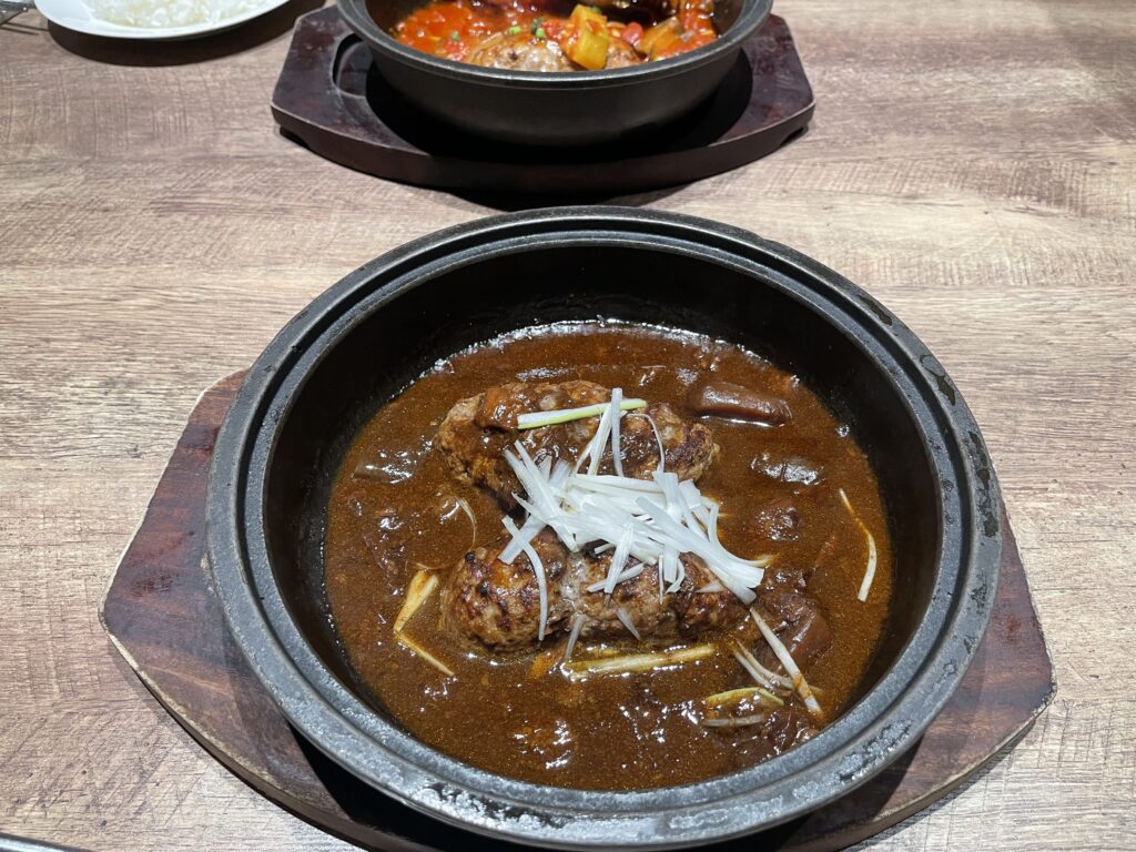 ハンバーグシチューランチ。ママ友さんはイタリア風、私は和風もつ煮風をセレクト。