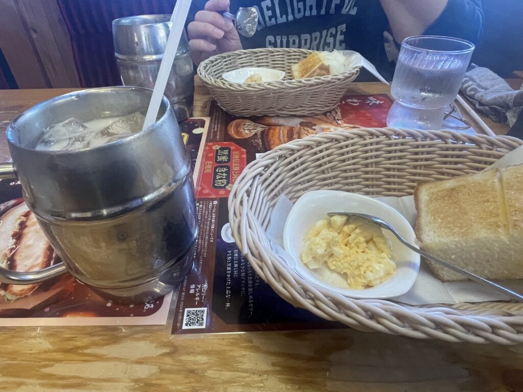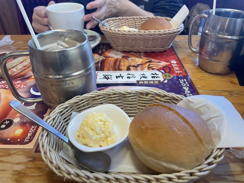 ママ友さんと朝さんぽ終わりのすっかり恒例となった、コメダでのモーニング。午前11:00までなら、ドリンクをオーダーするだけで無料でパンと卵を付けてもらえるのです。