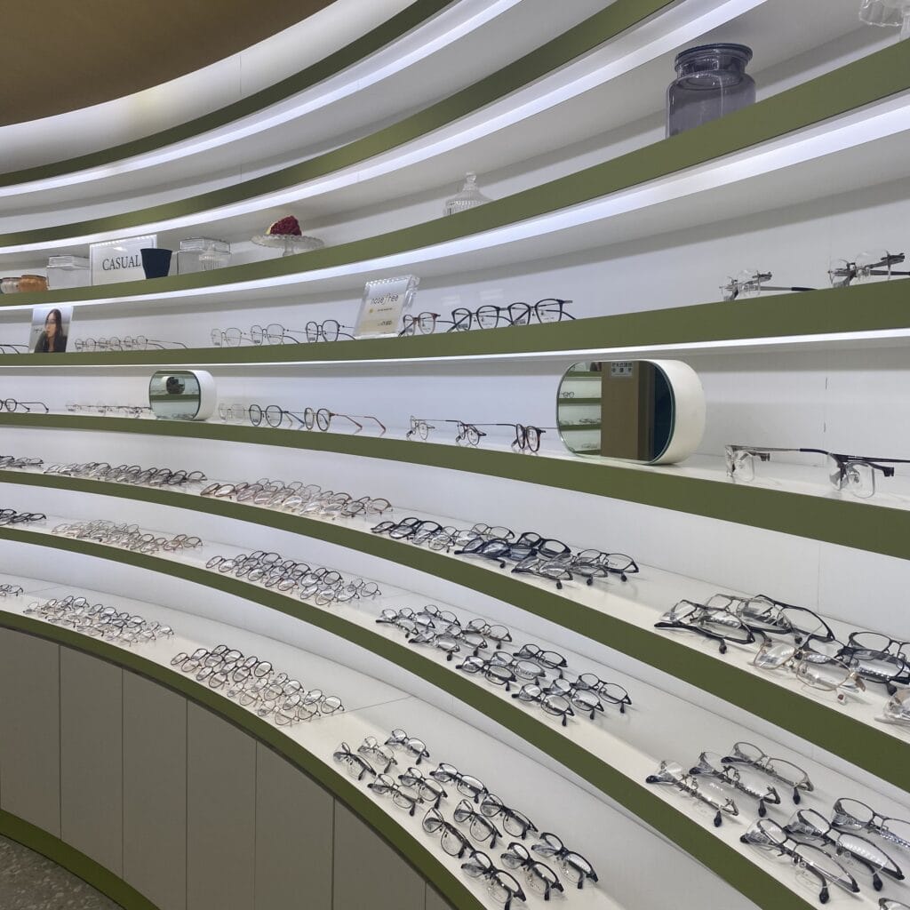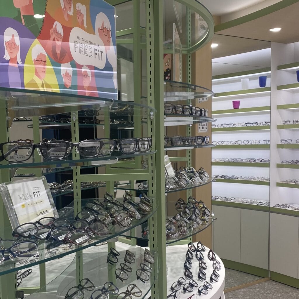 FREE FiTなどの眼鏡市場オリジナルブランドのメガネがずらりと並んでいます。