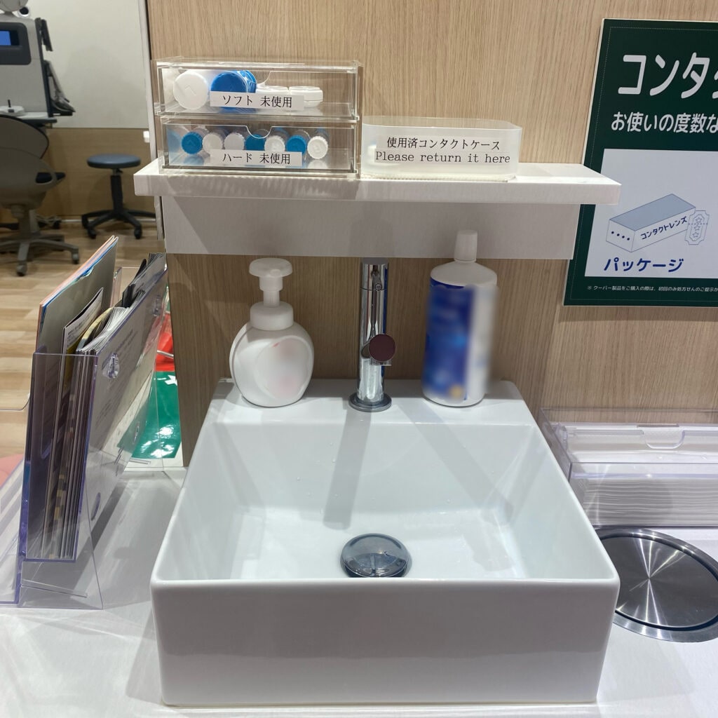 そんな人のためにコンタクトを一時保管するためのケース・消毒液も準備されていたので一安心。