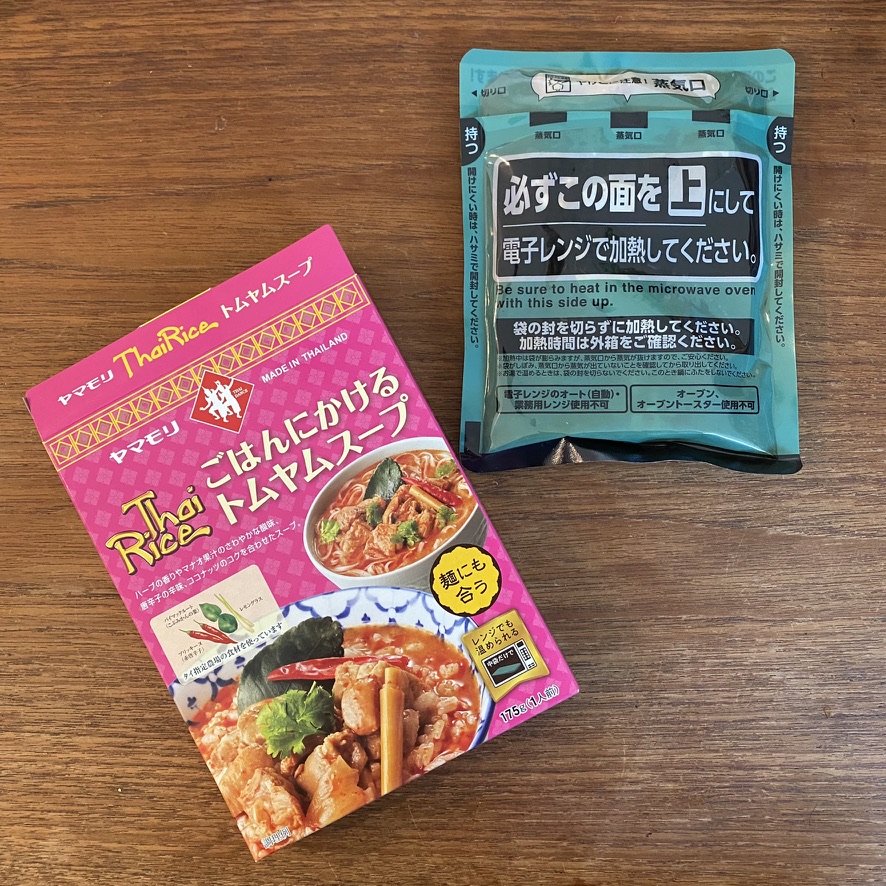 100人隊パーティーでお土産にもらった「ヤマモリ」の「タイカレー グリーン」と「ごはんにかける トムヤムスープ」を早速いただきました。少し前に「100人隊お助け美味しい名品大賞」企画で「タイカレー プーパッポン」が選ばれていて気になっていました!今回お土産としていただけて嬉しい限り。