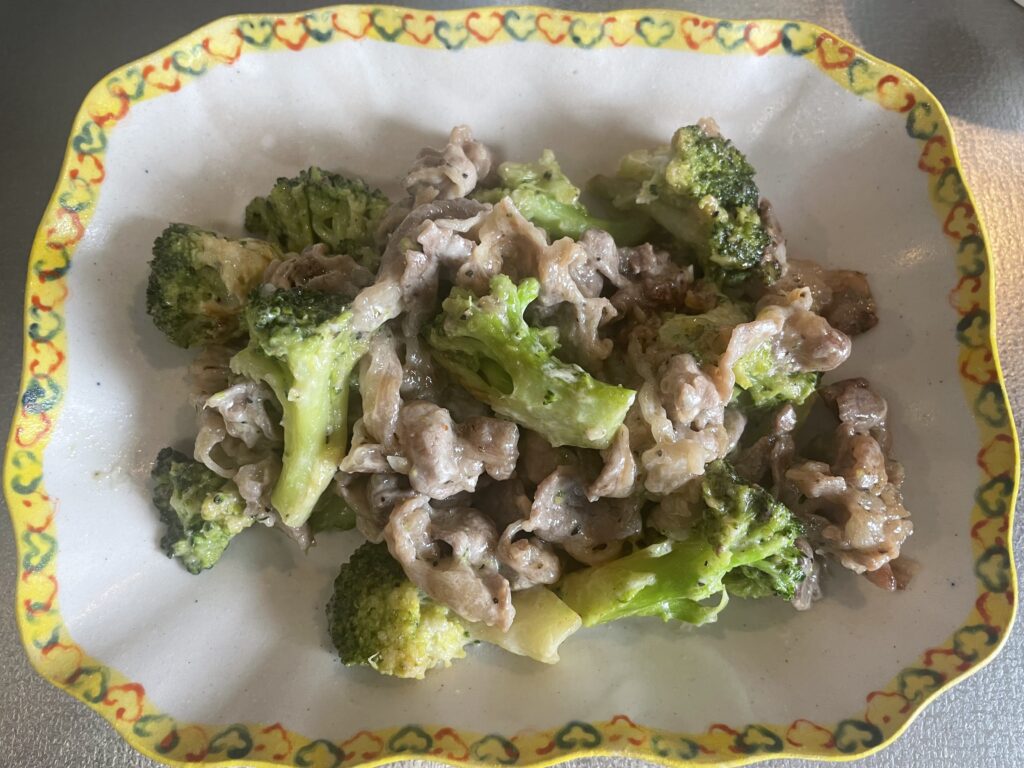 「牛肉、ブロッコリーのうま塩+マヨ炒め」