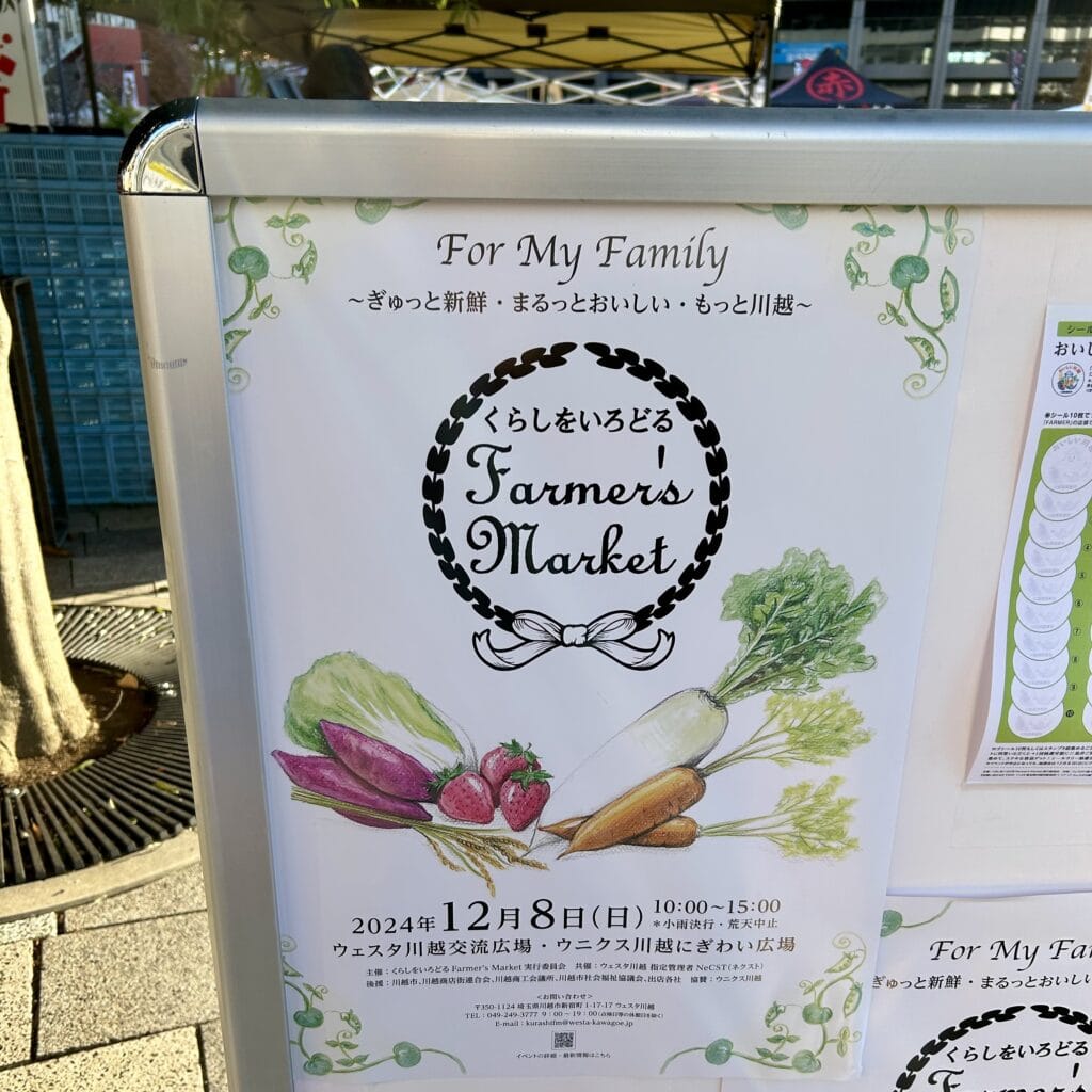 先日、川越市内の農家、飲食店、お菓子店、雑貨店、ワークショップのお店など100店が集結して「くらしをいろどるFarmer’sMarket」というイベントが行われました。川越市内に点在するお店を一気に見られるということで、近隣住民にとっては胸熱なイベント。ここ数年は、毎年息子と一緒に遊びに行くのを楽しみにしています。