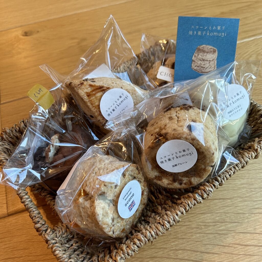 この界隈でとっても人気の焼き菓子屋さん。この日の整理券もあっという間になくなってしまったのですが、余剰販売で無事ゲットです。アレンジスコーンの種類が豊富で、購入できたのは一部です。