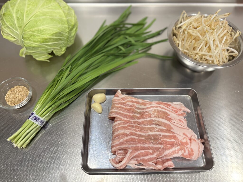 『キャベツと豚バラのモツ鍋風』作っていきます