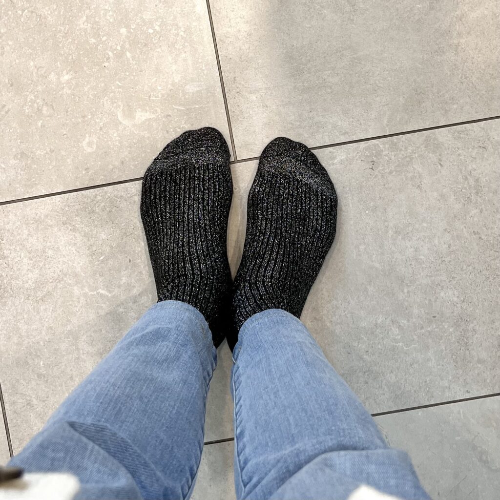 友人宅でお餅作りをするということで、この日は汚れても大丈夫な服装で行ったのですが、足元だけ少しクリスマス仕様に。