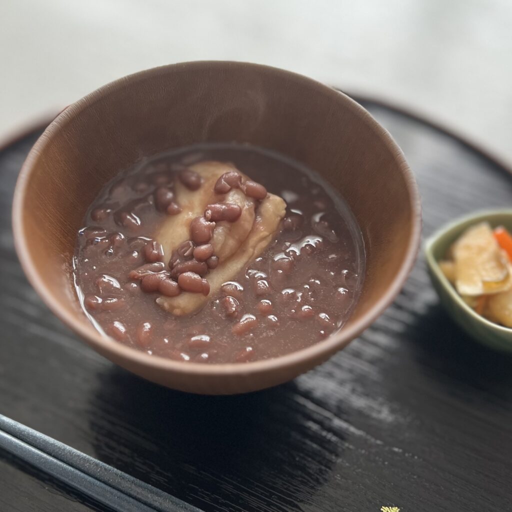 漬物の塩気とぜんざいの甘さのバランスが絶妙で、ぽかぽか温まりました。