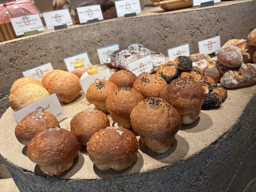 かわいらしくコロコロとした小さなサイズのパンが並ぶ店内。