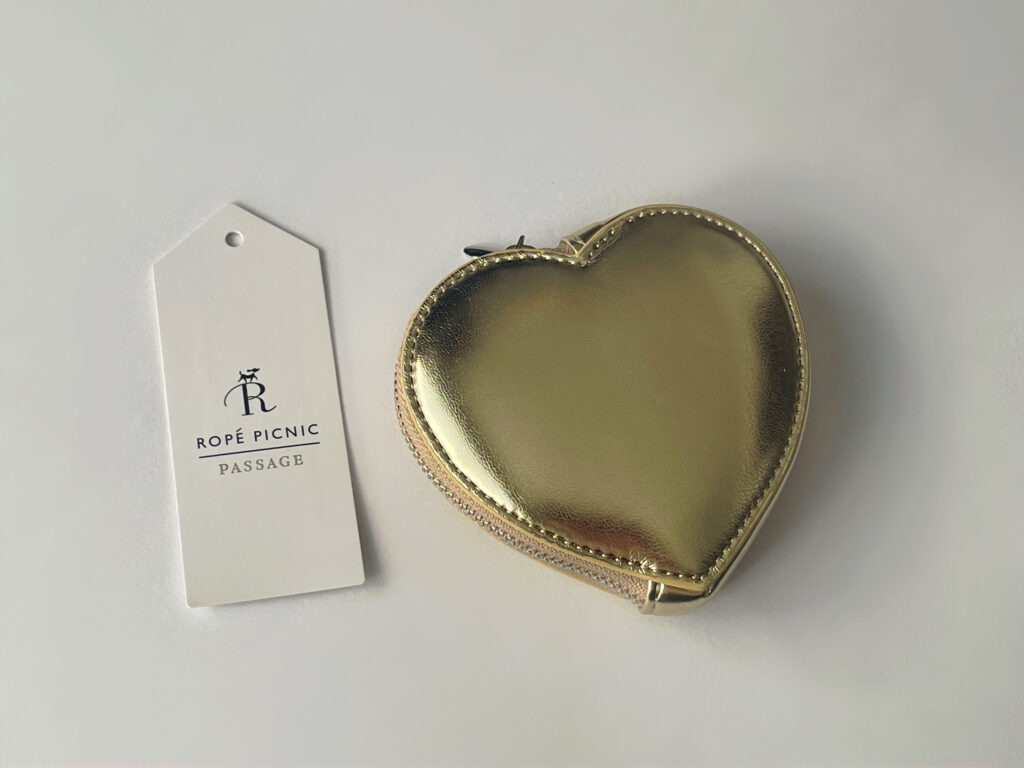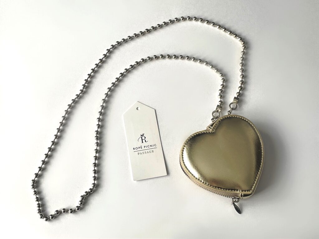 まずはゴールドのコインパースから。ゴールドでハート型のデザインが珍しいなと思って、即ポチでした!こちら、ボールチェーンショルダーも付いていて、ショルダーバッグとしても使えるんです。