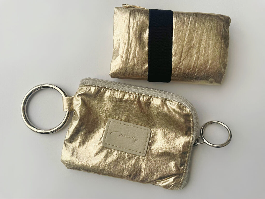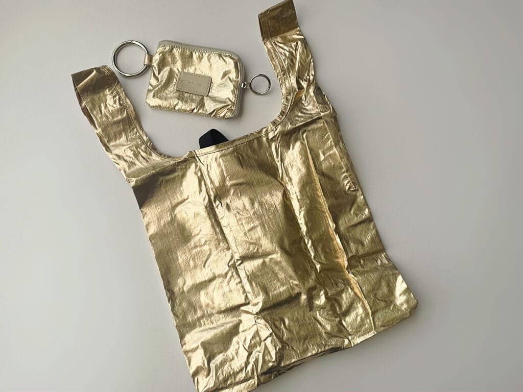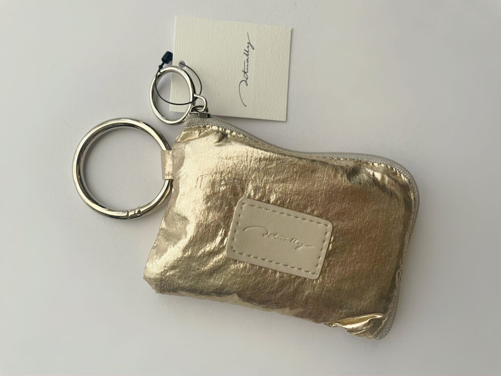 2つ目は、スマホショルダーに引っ掛けられるタイプのゴールドのエコバッグです!BIRTHDAY BAR(バースデーバー)などで取扱いのあるActually(アクチュアリー)というブランドのもの。少し燻した感じのゴールドも好みでした。