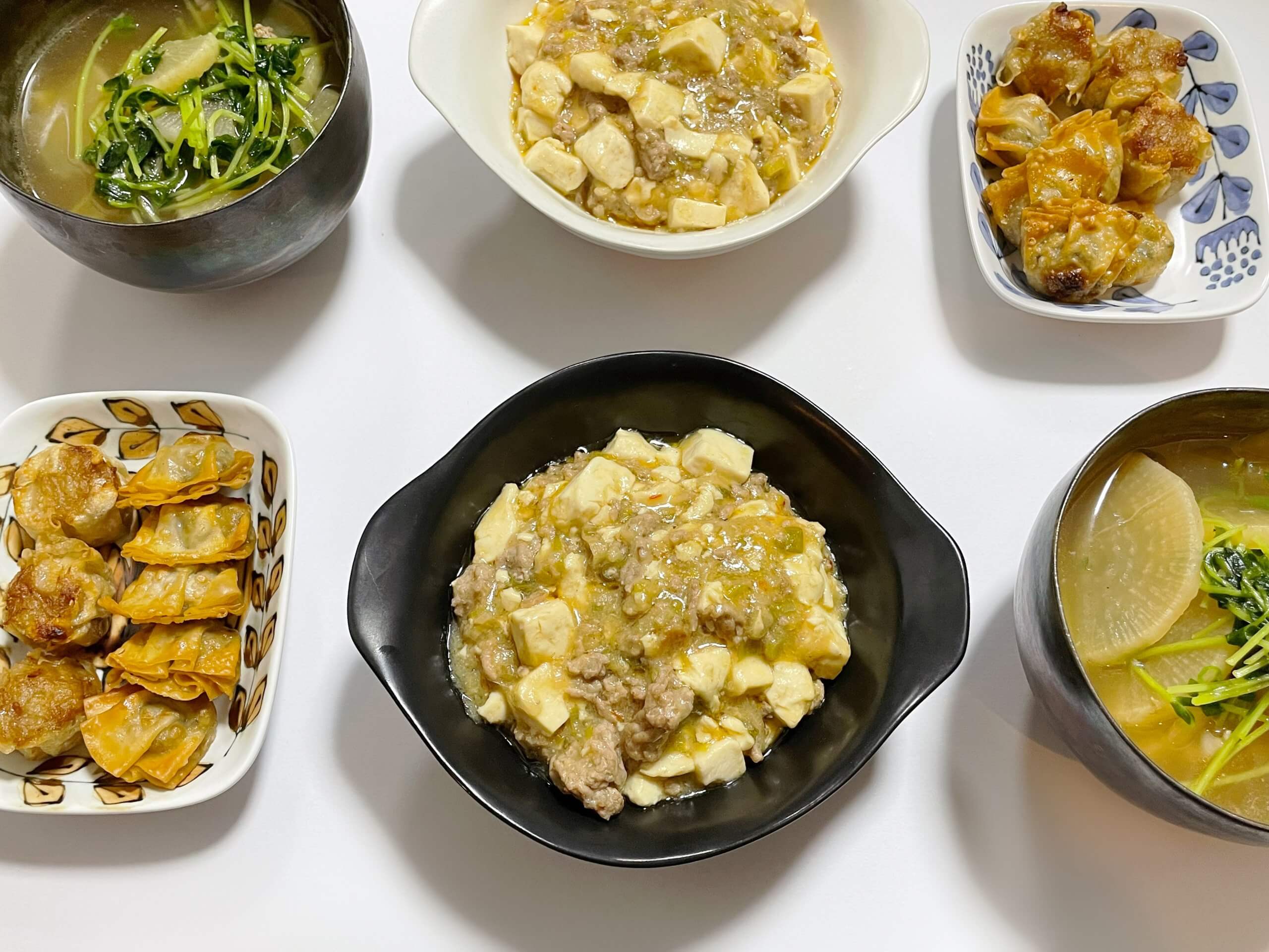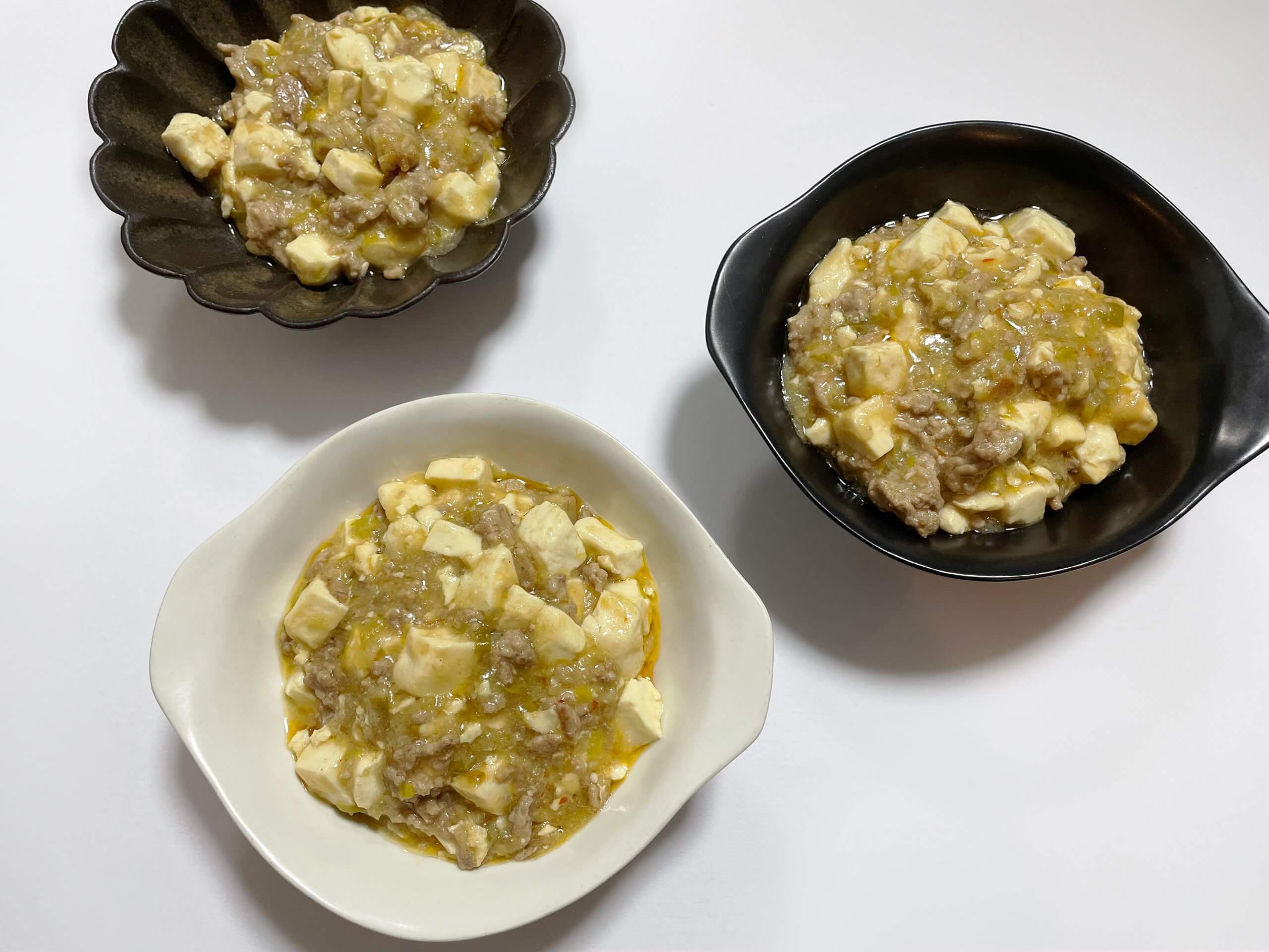 山本ゆりさんのレシピで作ってみた麻婆豆腐。コウケンテツさんの「辛くない麻婆豆腐」もよくリピしていますが、山本ゆりさんレシピのこちらはニラなし!器は石岡信之さん作陶の輪花鉢や、井山三希子さん×倉敷意匠計画室コラボのボウルです。