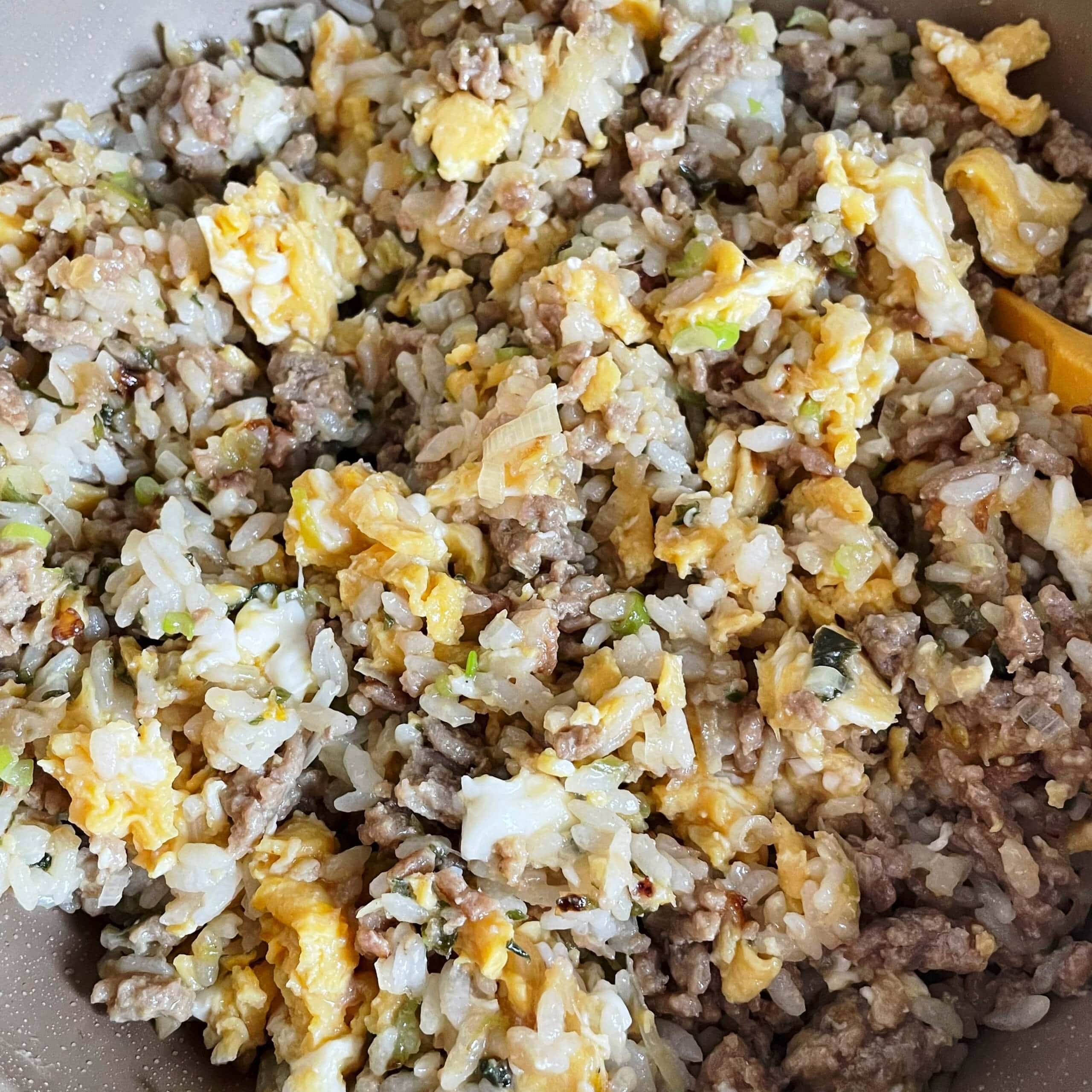 またある時は肉味噌炒飯に。これが長男(中2)に大ヒット。一人で二人前の量を平らげてしまいました。