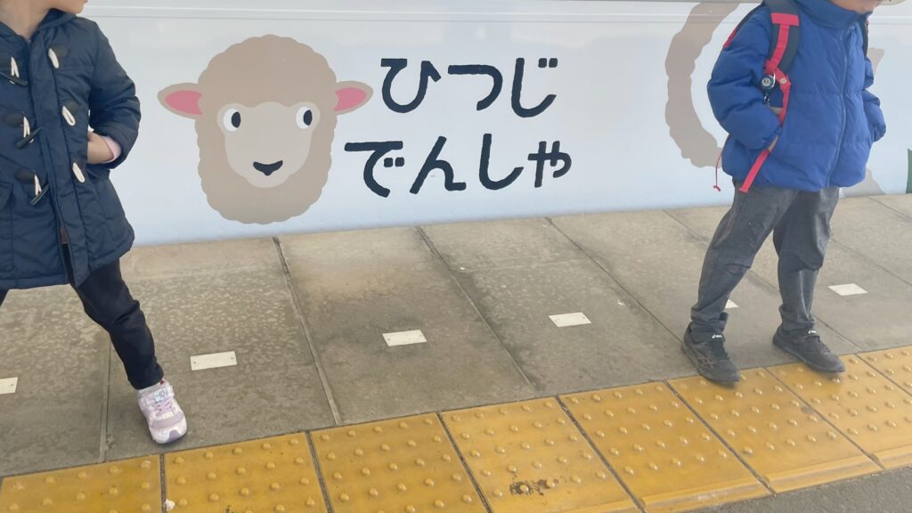 改札を通らずホームに着いたら電車に乗り(このひつじでんしゃがまた外装も内装もカワイイ!)、2駅でこどもの国に到着。