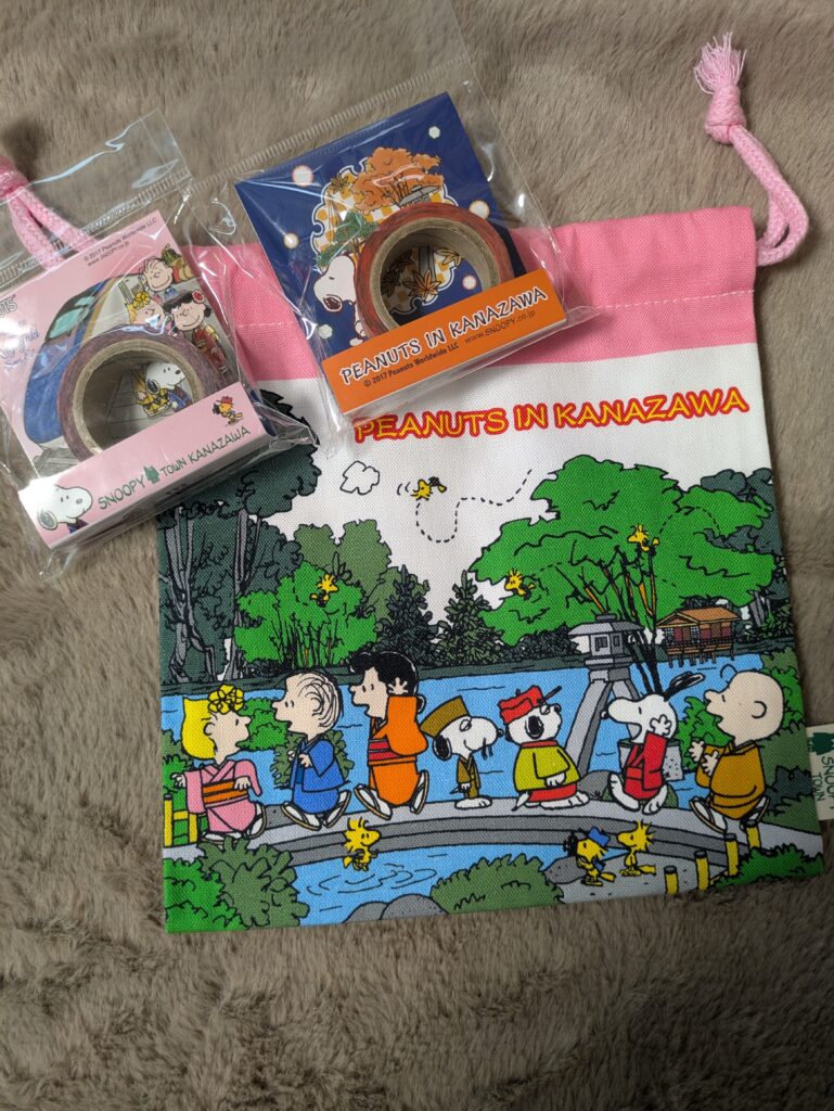 金沢駅にある『スヌーピータウンショップ金沢店』では金沢限定グッズが発売されており、巾着とマスキングテープを購入しました♡