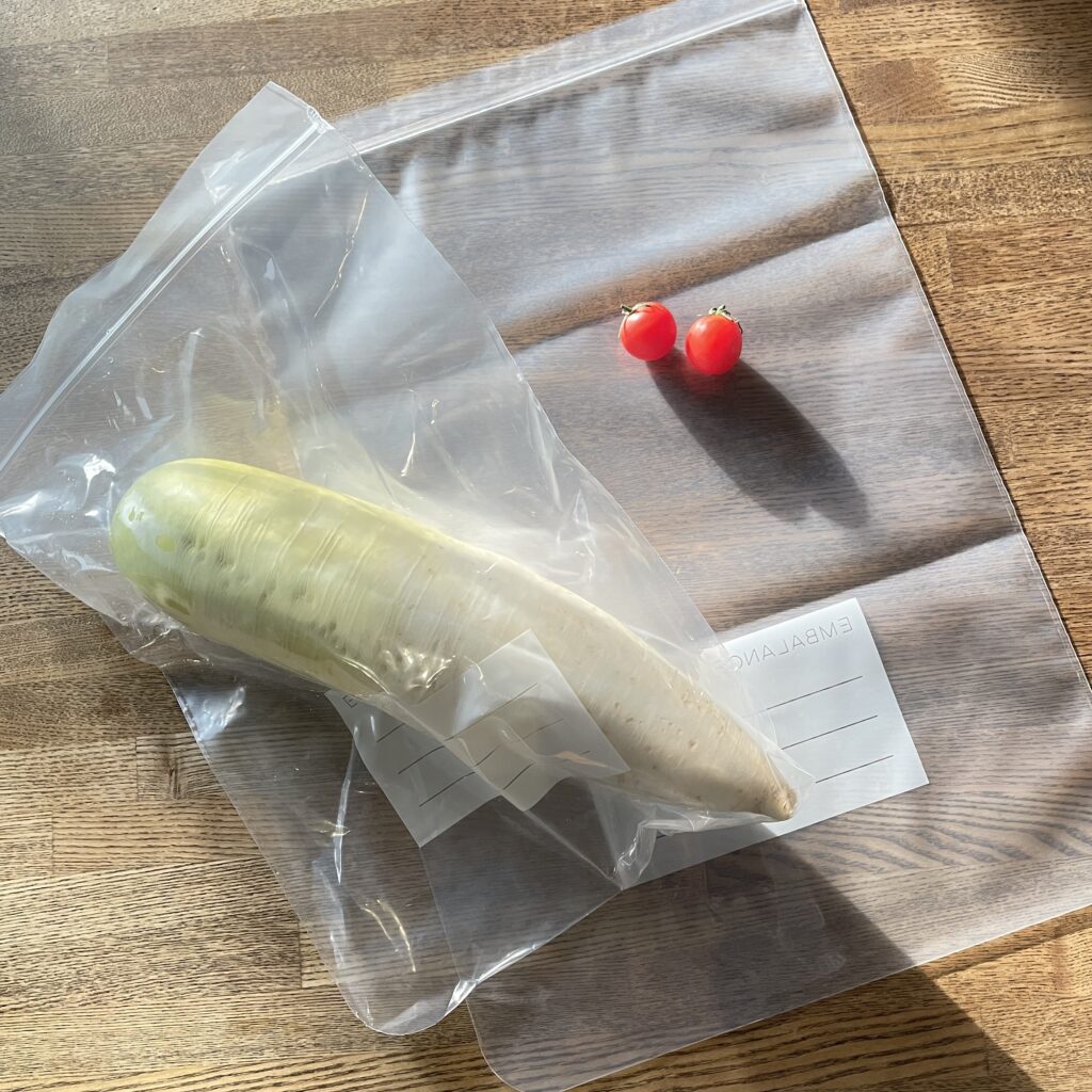 食材の鮮度が保てるというEMBALANCEのジッパーバッグを見つけました。