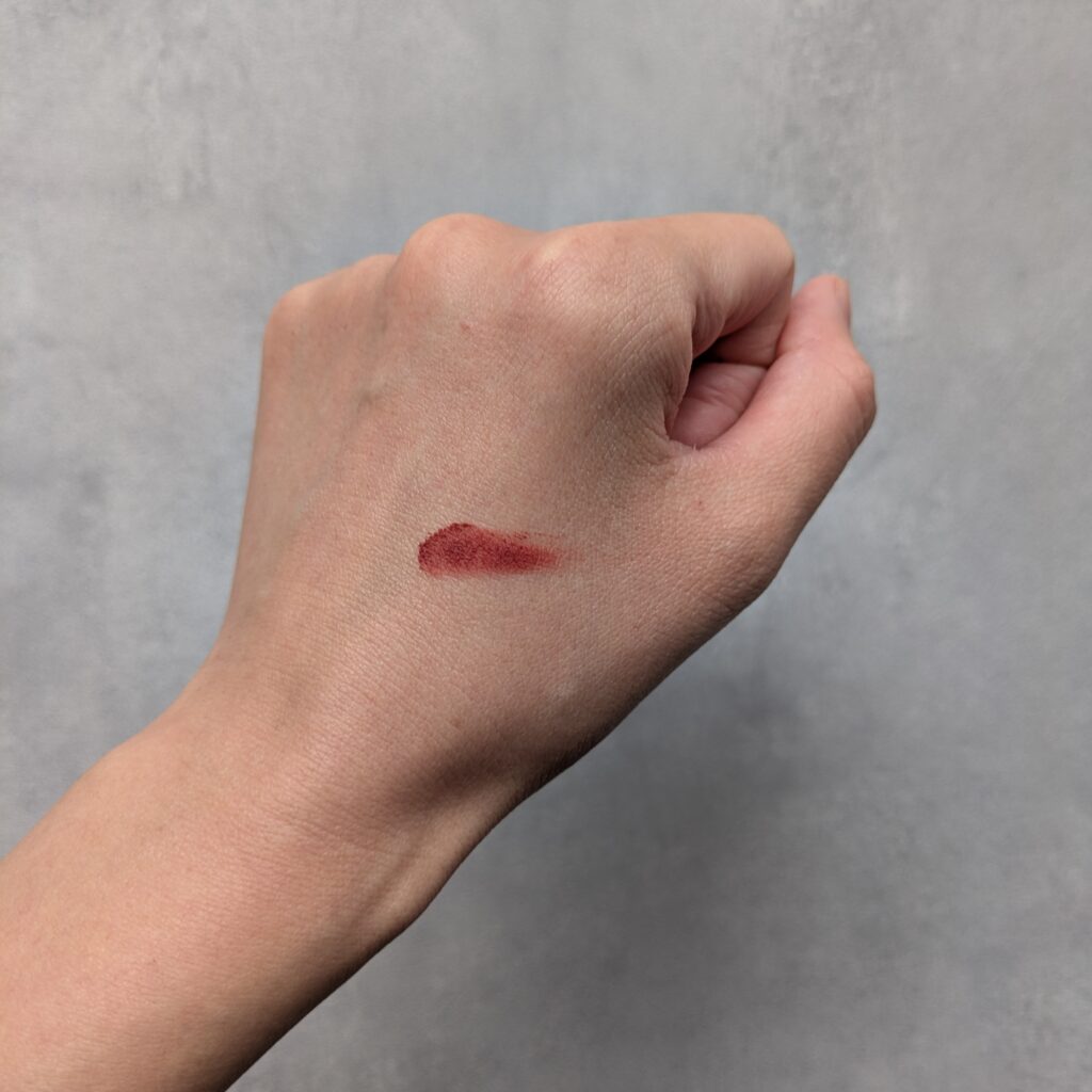 ブラウンがかった赤でラメも目立ちにくいので、目、頬、唇すべてに使ってもうるさくなくとても好きな色です。