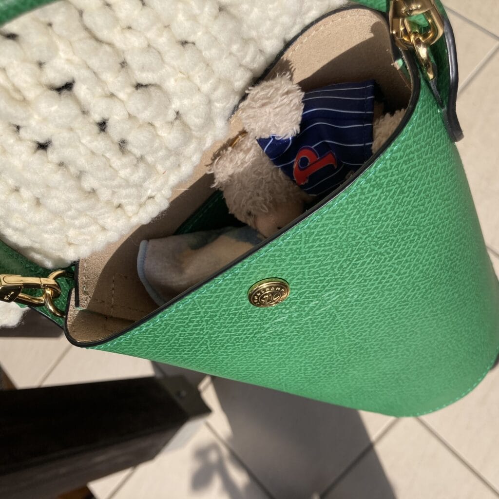 差し色になるバッグを探していて、とっても綺麗なグリーンに一目ぼれ。