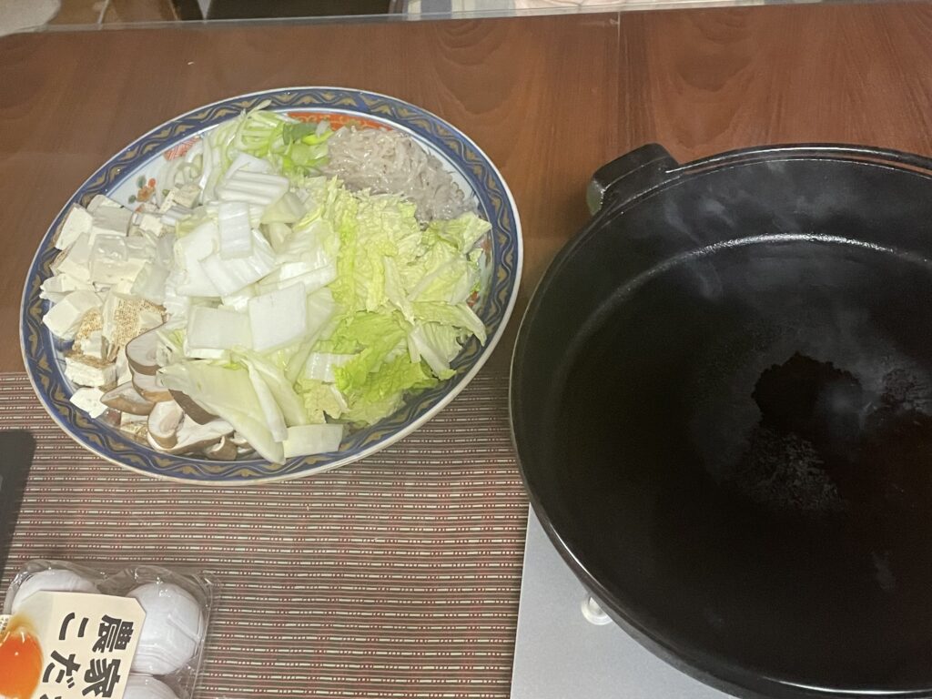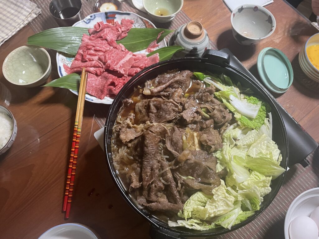 子ども達のリクエストで、この日はすき焼き!私は具材を切るだけの、またまたお気楽役回り。
