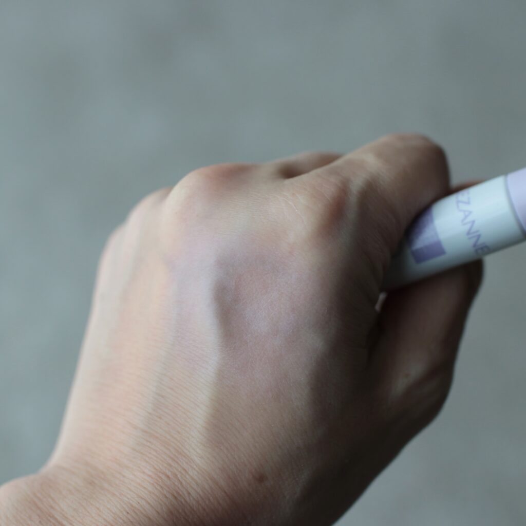手に伸ばしてみると、パープルがちゃんと馴染み、自然にトーンアップして透明感が生まれます。