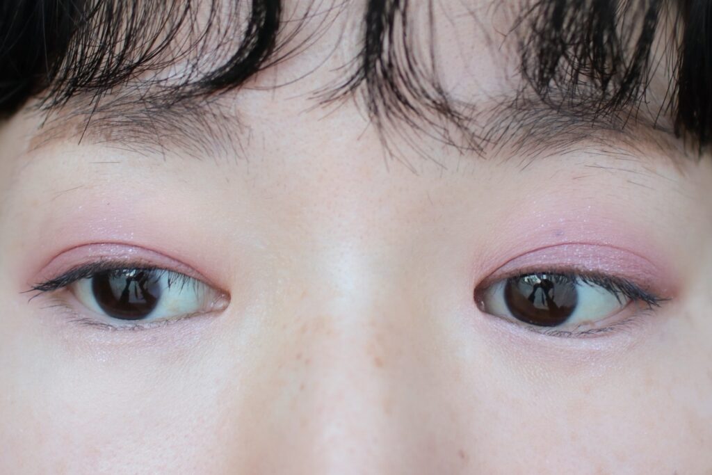 アイシャドウを乗せてみる。アイメイクベース+RD-1 ロージーポップ
