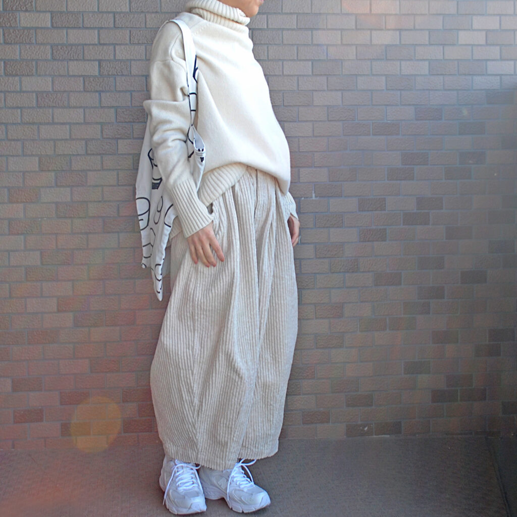 カジュアル寄りのサーカスパンツですが、モノトーンコーデならちょっとしたお出掛けにも◎