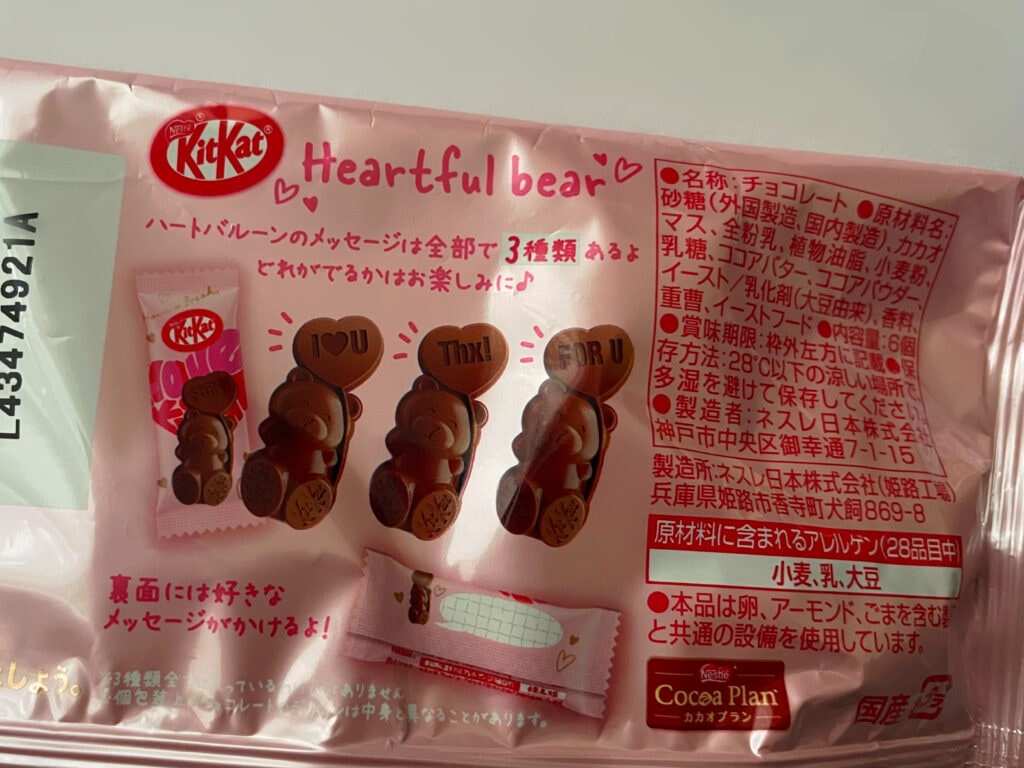 最近コンビニでもズラッと並べて売られているのを見かけるハートフルベアー。やっぱり買ってしまいました!!せっかくキットカットショコラトリーに来たので、有料紙袋も購入。