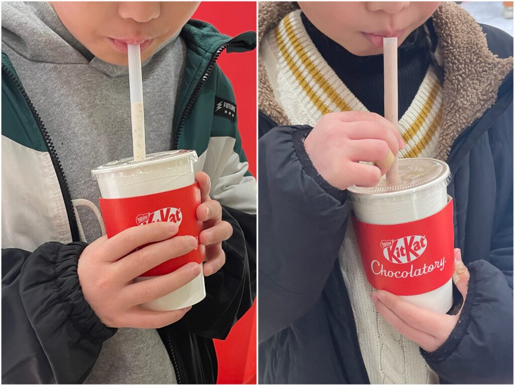 子ども達に1本ずつ、チョコレートver.とホワイトチョコver.をオーダー。2種類とも少し分けてもらいました♩本当に美味しくて…ウエハースの風味や食感もしっかり再現されていて、飲んだら思わず笑顔こぼれること間違いナシですよ!