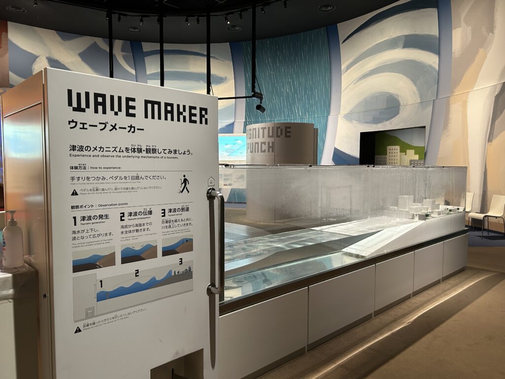 ウェーブメーカー」は津波の原理が見てわかる装置。