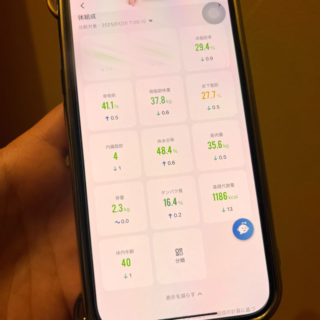 やっと少し痩せたぁあ😭もう現状維持のまま終わるのかと思いました🙃年末年始特別スケジュールが落ち着いて一安心。このまま頑張りたい!
