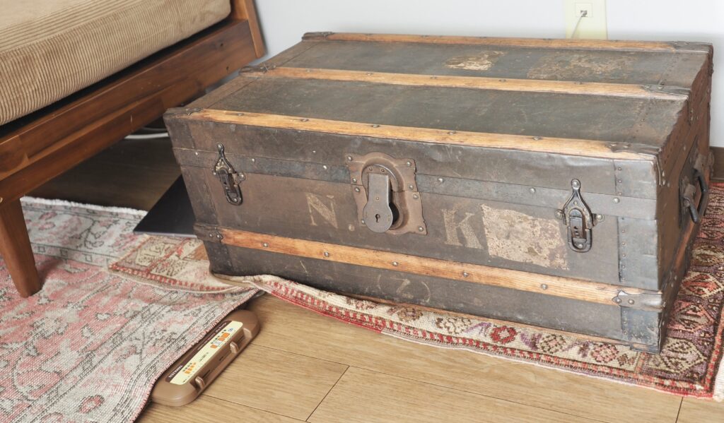 テレビを違う部屋に移動した関係で今までテレビボードに入れていた文房具などは、このトランクに入れることに。